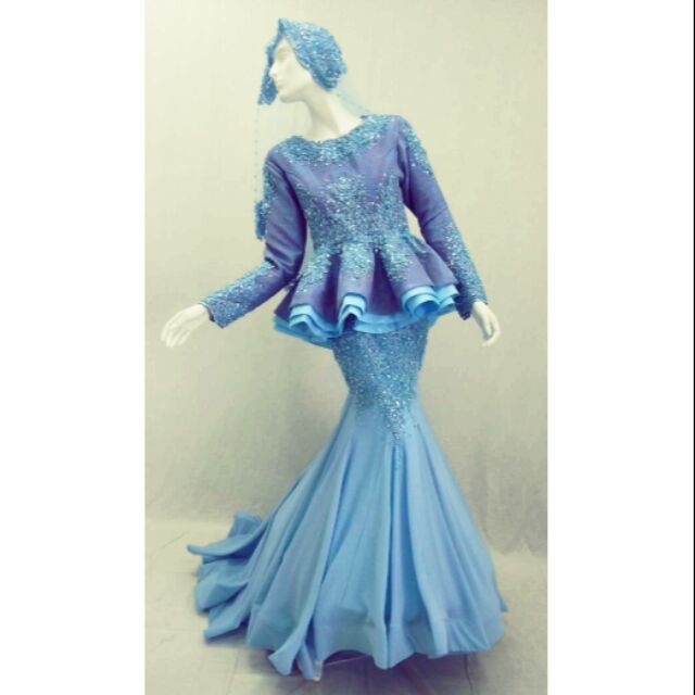 Baju kahwin baby blue di 2019 renda kebaya gaun .